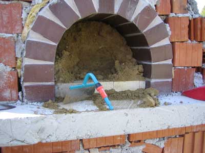 Jetzt kommt die entscheidende Bauphase. Die Innenform des Ofens wird